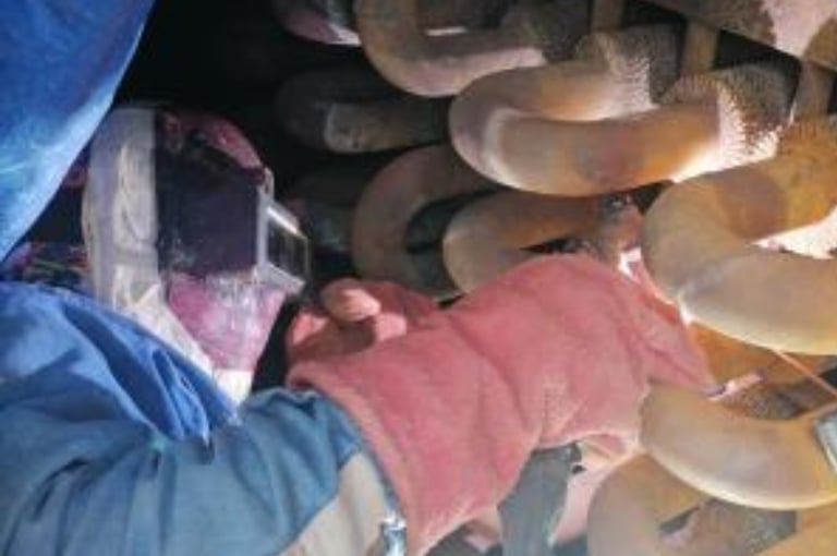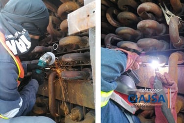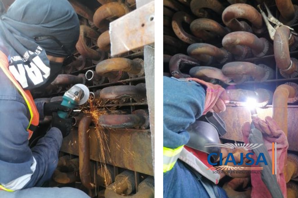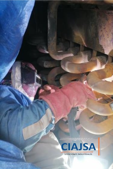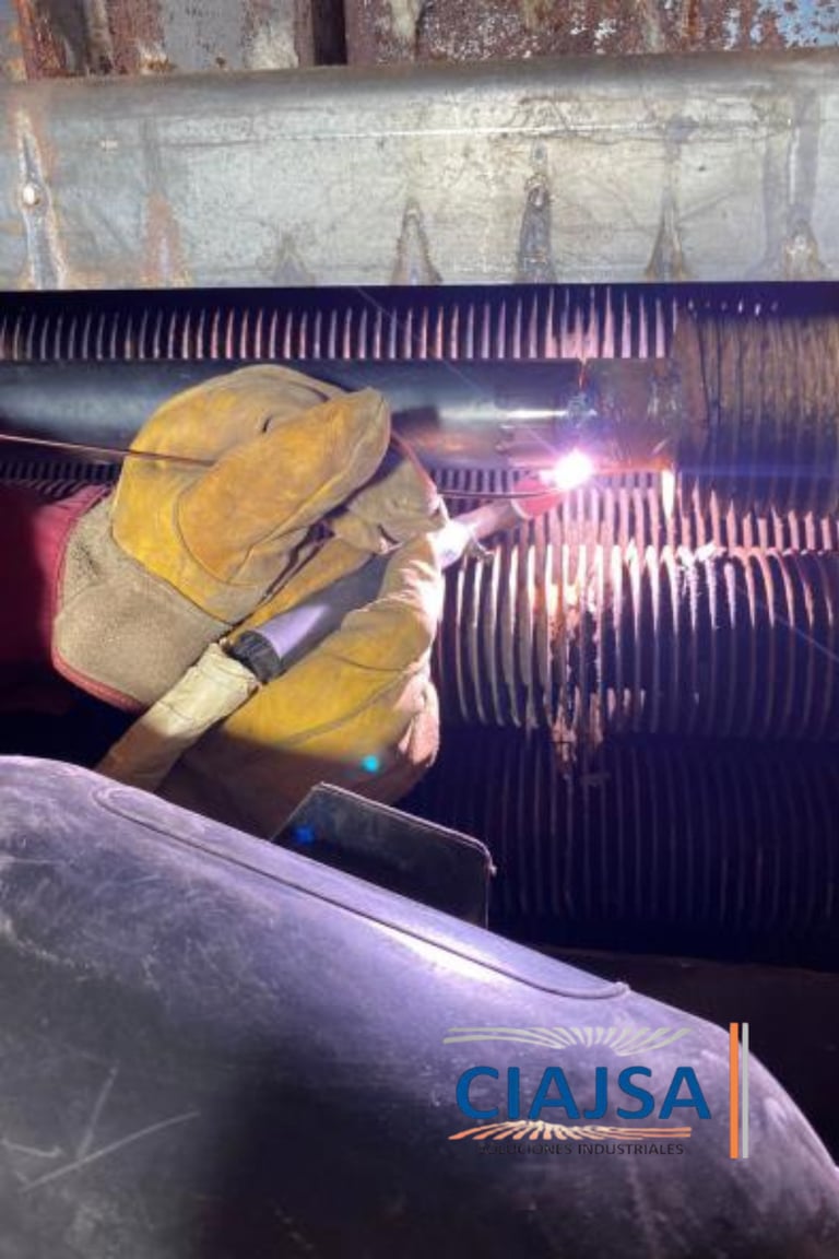 Reparación y cambio de curvas en caldera superior soldadura TIG