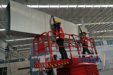 *Servicio de armado en piso y posterior montaje de estructura para cajas de aire, montaje