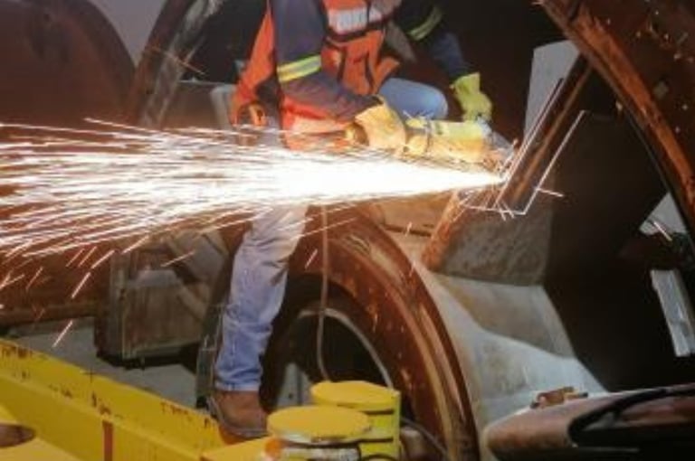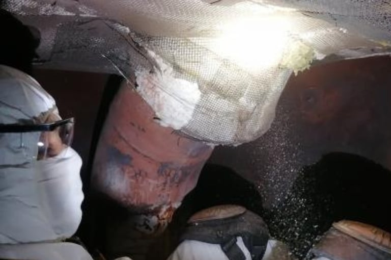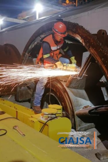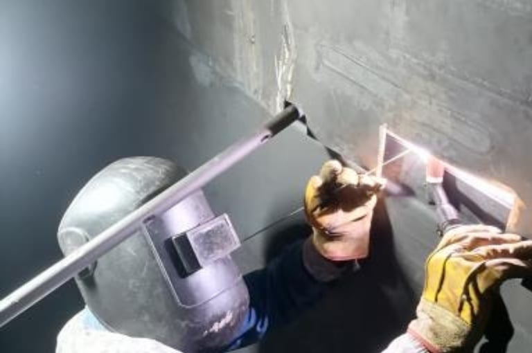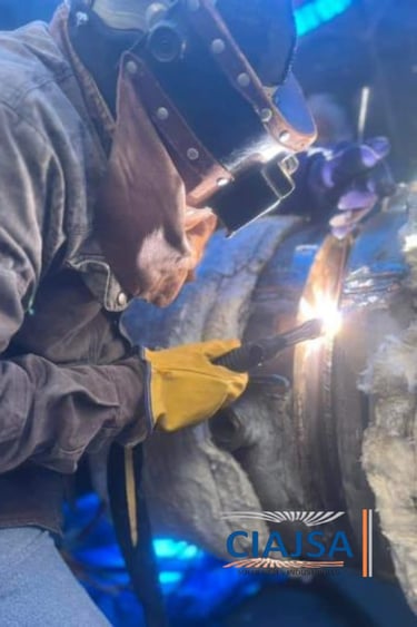 Reparación de pared en área posterior de turbina GTS, instalación de fibra Mineral y soldadura TIG
